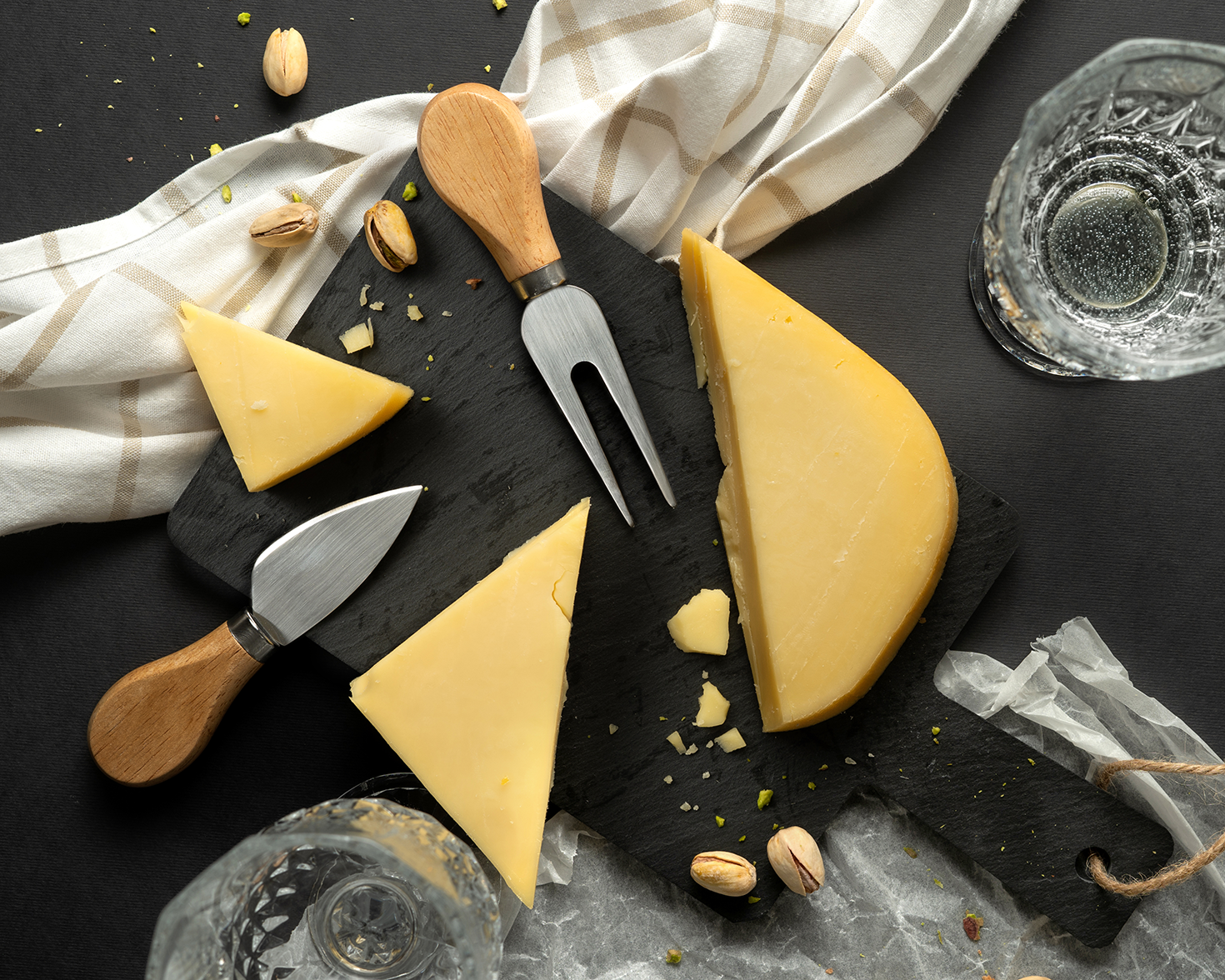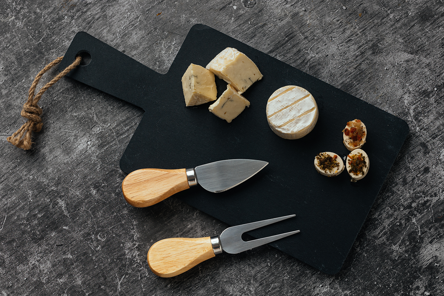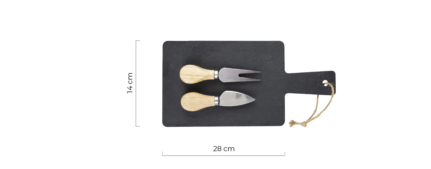 Set kamena ploča i pribor za sir sa drvenom drškom, 3/1