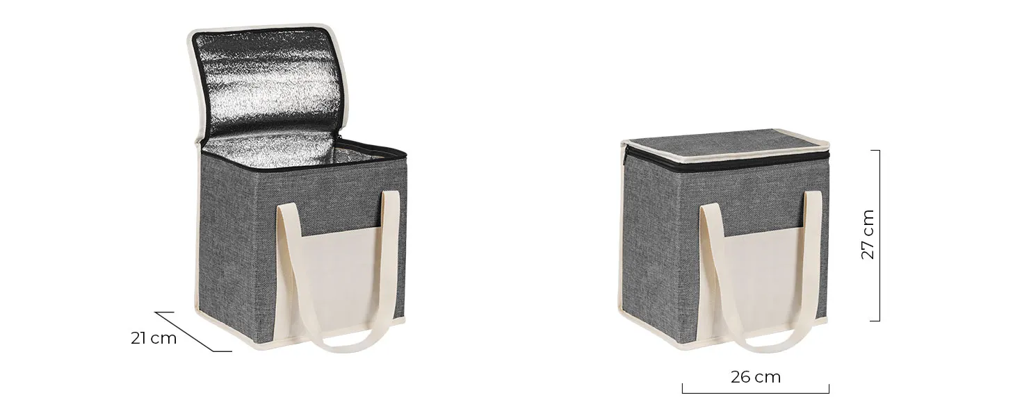 Materijal: mešavina pamuka i poliestera sa aluminijumskom penom Dimenzija: 26 x 21 x 27 cm Pakovanje: 40/5/1 Preporučena štampa: sito
